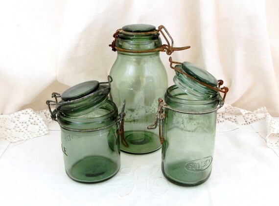 Large Antique French Green Glass Canning Jar 1 Liter / 2.11 Pints, French Country Decor, Mason Jar, Preserve, Jam, Green Bottle, L'ideal, by VintageDecorFrancais