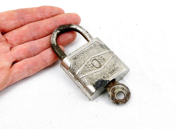 Vintage Working French Metal Padlock with 1 Working Key Made by SOS, Industrial Decor, Retro Vintage Home Interior, Steampunk, Mid Century by VintageDecorFrancais