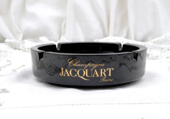Large Vintage Jacquart Champagne Black Glass Ashtray, Mid Century Decor Retro Vintage Home Interior European Vintage, Man Cave , Tobacciana by VintageDecorFrancais