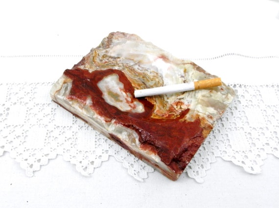 Vintage French Dark Red and White Veined Marble Stone Ashtray, Mid Century Decor, Retro Home Interior, Man Cave, Tobacciana, Smoking, Onyx by VintageDecorFrancais