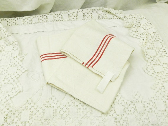 Excellen Coindition Large Antique French Linen Tea Towel with Woven Red Stripes / French Country Kitchen Decor/ Traditional/ Parisian /Home by VintageDecorFrancais