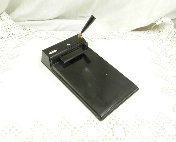 Vintage Mid Century 1960 Perpetual Calendar Note Pad Holder and Pen Holder, Retro Office Black Desk Tidy, 60s Brocante Decor from France by VintageDecorFrancais