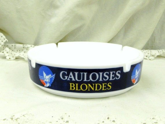 Very Large Vintage Milk Glass Mid Century Gauloise Blondes Ashtray / French Cafe Decor / Retro Vintage Home Interior / Man Cave / Tobacciana by VintageDecorFrancais
