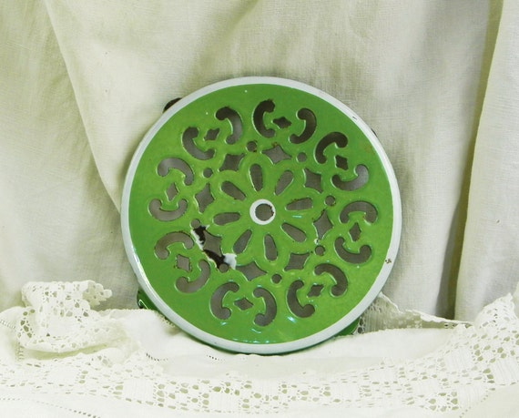 Vintage French Pea Green Enamelware Metal Trivet / Hot Plate / Heat Mat, Country Cottage Kitchen Decor, Enameled Kitchenware from France by VintageDecorFrancais