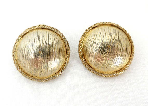 Hattie Carnegie Button Earrings Vintage Gold Tone Textured Clip-ons, Round Braided Signed Designer Earrings by LeesVintageJewels