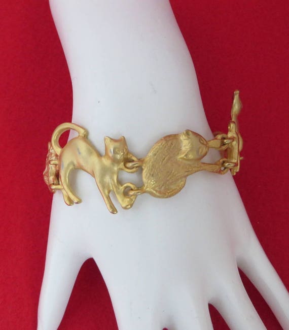 Vintage Cat Bracelet, AJC Jewelry, Cat Lovers Bracelet, Gold Tone Link Bracelet by LeesVintageJewels