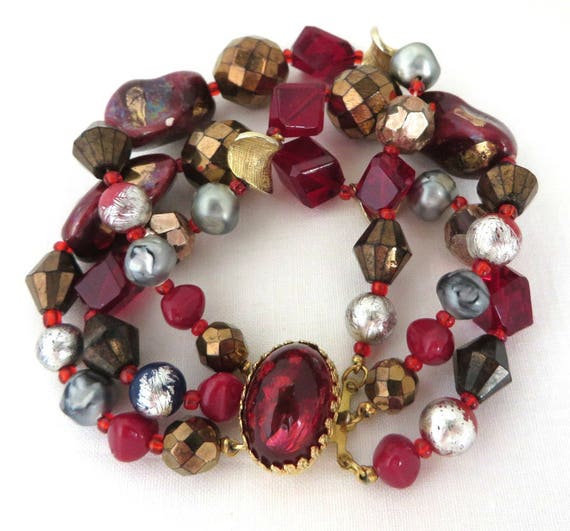 Bracelet, Glass Bead Bracelet, Signed Hattie Carnegie Jewelry, Vintage Jewellery, Triple Strand Beaded Designer Bracelet, Gift for Her by LeesVintageJewels