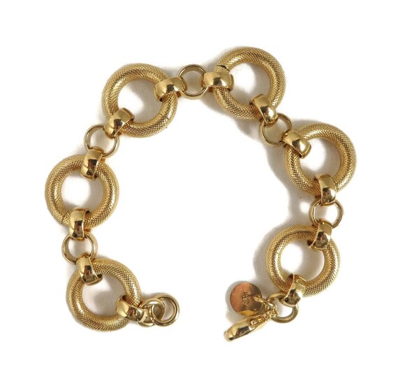 DOLCE VITA Chain Bracelet, Vintage 18k Gold Plated Textured Bracelet, Gift for Her by LeesVintageJewels