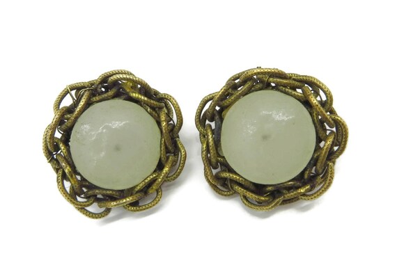 Vintage Miriam Haskell Button Earrings, Mid-Century Designer Braided Brass and Glass Button Clip-ons by LeesVintageJewels