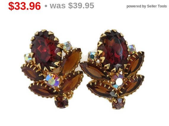 Juliana D&E Amber Earrings, Vintage Rhinestone Earrings, Verified Juliana Jewelry, AB Rhinestone Clip-ons, FREE SHIPPING by LeesVintageJewels