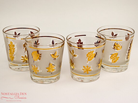 MCM Libbey Golden Foliage | Gold Leaf Frosted Glasses | Vintage Hostess 6 Oz Old Fashioned Glasses | Set of 4 by NostalgiaDenClassics