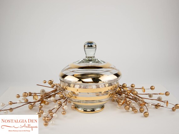 Vintage Crystal Jar | Gold Banded MCM Dish with Lid by NostalgiaDenClassics