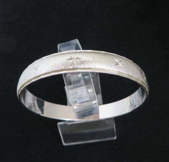 Monet Silver Tone Bangle - Vintage Brushed Silver Tone Stars Bracelet, Gift for Her, Gift Boxed by LeesVintageJewels