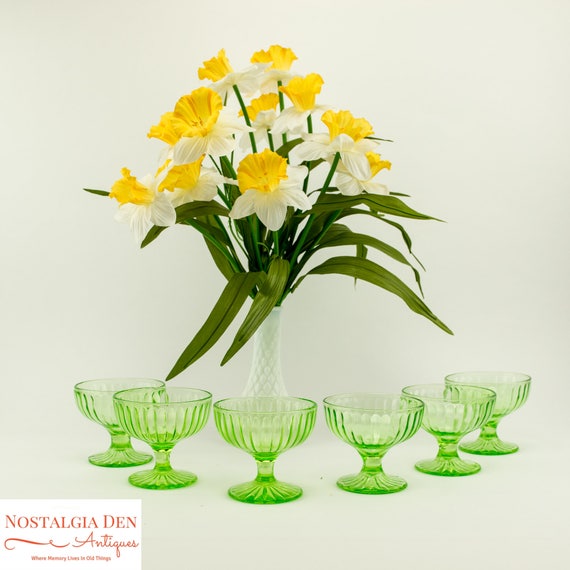 Green Depression Glass | Uranium Glass | Dessert Dishes | Glass Sherbet Side Dishes | Set Of 6 by NostalgiaDenClassics