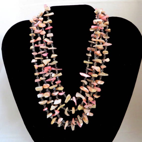 Japan Shell Necklace, Vintage MOP Multi-Strand Natural Pink Shell Island Style Necklace, Gift for Her by LeesVintageJewels