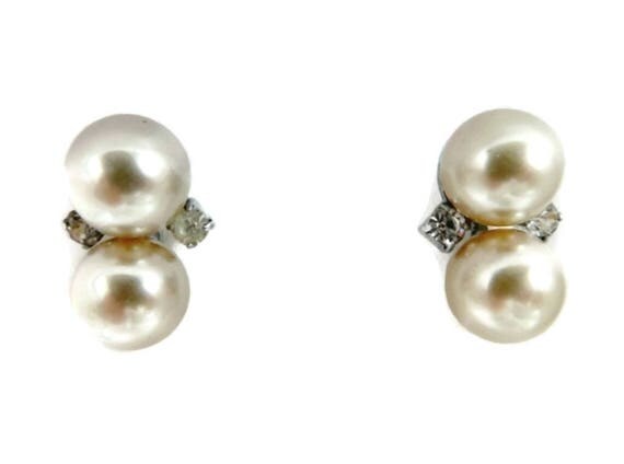 Faux Pearl Earrings - Vintage Japan Pearl & Rhinestone Earrings, Silver Tone Screwback Earrings, Gift for Her, Gift Box by LeesVintageJewels