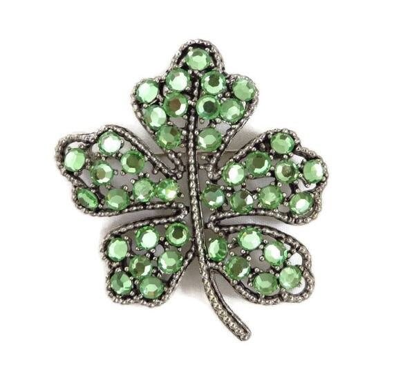 Rhinestone Shamrock Brooch - Vintage ...