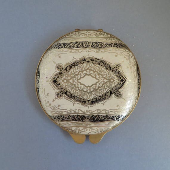 Cover Girl Compact - Vintage Black, Cream Round Mirrored Makeup Case, Collectible Powder Compact by LeesVintageJewels