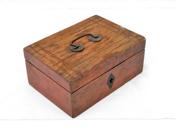 Antique French Oak Box with Metal Handle on the lid, French Country Decor Money Bank, Jewellery / Jewelry / Trinket Box Made of Wood by VintageDecorFrancais