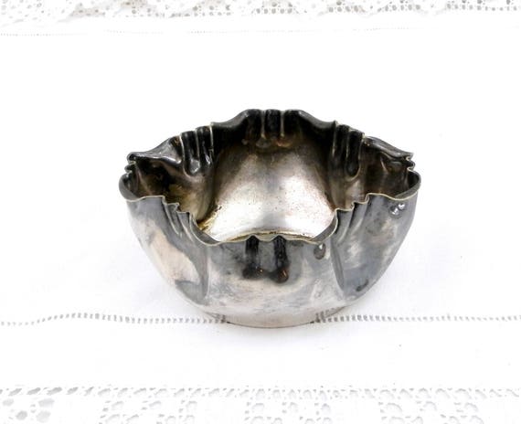 Vintage Silver Plated Sugar Bowl with Crimped Edges from France Marked R*M 5 on the Base Tarnished Patina, Chateau Chic Brocante Decor by VintageDecorFrancais