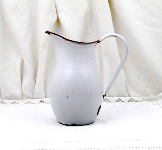 Antique Chippy Enamelware Pot Bellied Pitcher from France, Enamel Jug / Vase, French Rustic Shabby Chateau Cottage Chic, Country Decor by VintageDecorFrancais
