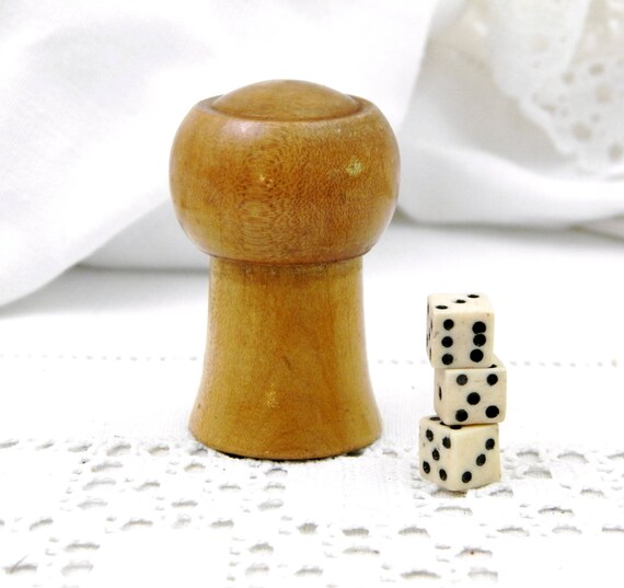 Antique French Champagne Wooden Cork Die Shaker with 3 Bone Dice Inscribed "Bar de L'Epoque" on the Base, Barware Collectable, Cork Box by VintageDecorFrancais
