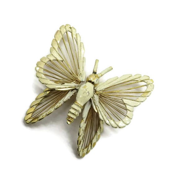 Vintage Cream Butterfly Brooch - Monet Cream Enamel Pin, Gold Tone 1960s, Insect Pin, Gift Box by LeesVintageJewels