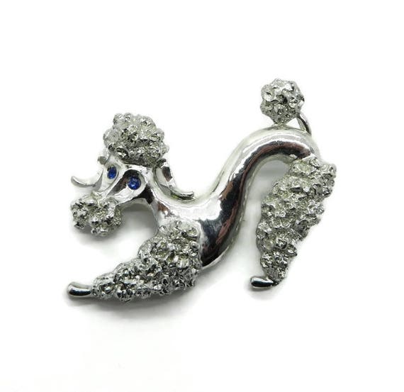Gerry's French Poodle Brooch, Vintage Silver Tone Poodle Pin, Blue Rhinestone Eyes Signed Gerry's Pin, Gift for Her by LeesVintageJewels