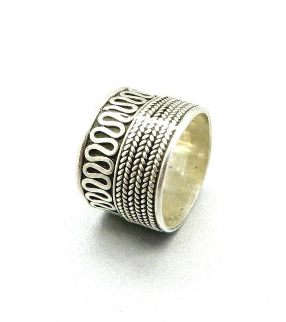 Sterling Silver Wide Band Ring, Vintage Scrolled & Braided Band Ring Size 7 by LeesVintageJewels