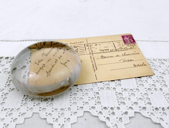 Antique Round Flat Clear Glass Paperweight from France, Magnifying French Glass Weight, Shabby Chateau Cottage Chic, French Country Decor by VintageDecorFrancais
