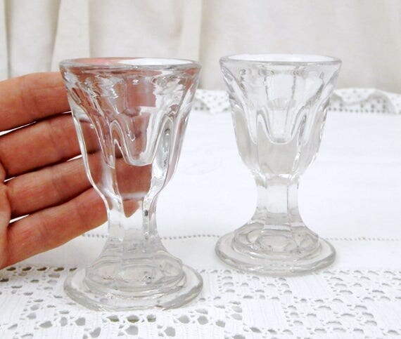 2 Antique French Deceptive Firing Glasses, French Shot Toasting Stem Glass from France, Bistro Man Cave Barware Decor, French Drinking by VintageDecorFrancais