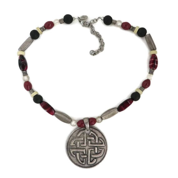 CHICO'S Pendant Necklace, Vintage Chunky Tribal Style, Boho Beaded Silver Tone Pendant Choker Necklace by LeesVintageJewels
