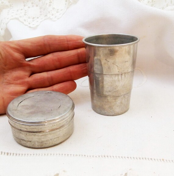 Vintage Metal Folding Beaker with Separate Storage Box, Collapsible Beaker with It's Own Tin, Retro Camping Equipment, Hiking Scout, 1930 by VintageDecorFrancais