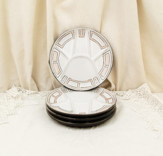 2 Vintage French Niderviller Ceramic Mid Century Raclette / Fondue Plates, Pair of Divided Plates 1960s from France, Retro Division Plate by VintageDecorFrancais