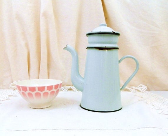 Vintage Mint Green Enamel French 3 Piece Coffee Pot with Goose Neck Spout, Enamelware Pour Over Cafetiere from France, Retro French Country by VintageDecorFrancais