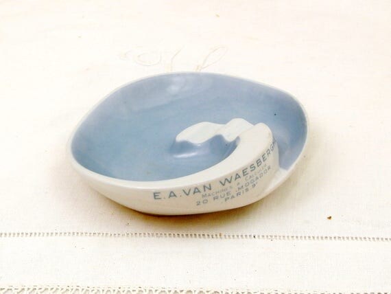 Vintage Mid Century Modern Ceramic Publicity Ashtray for Calculating Machine Shop in Paris Made by Altenkunstadt Bavaria, 1950 s Tobaccina by VintageDecorFrancais