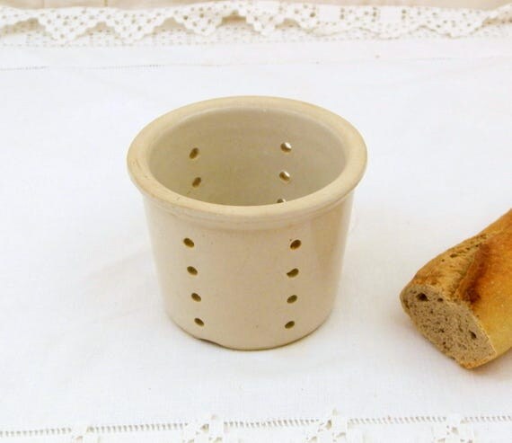 Antique French White Glazed Ceramic Cheese Strainer Pot, Stoneware Faisselle Drainer Vessel from France, Farmhouse Cottage Kitchen Decor by VintageDecorFrancais