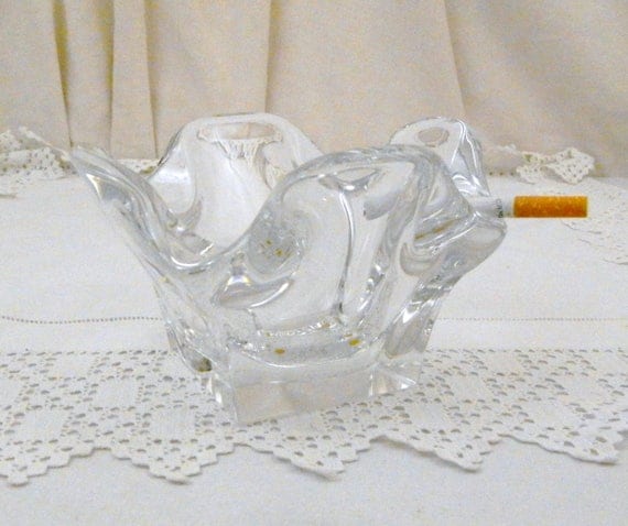Large Vintage Crystal Glass Cigar / Cigarette Ashtray by Bayel Cristal France, Heavy Clear Glass French Ash Tray, Vintage Retro Home Decor by VintageDecorFrancais