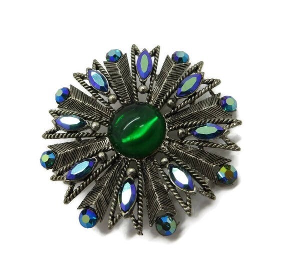 Vintage Emerald Rhinestone Brooch, Signed Weiss Green and AB Rhinestone Silver Tone Brooch by LeesVintageJewels