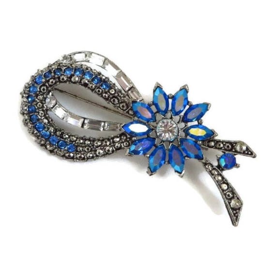 Blue Rhinestone Brooch, Bow Brooch, Signed Weiss AB Rhinestone Pin, Vintage Jewelry, Sapphire Blue Crystal Pin, Gift for Her by LeesVintageJewels