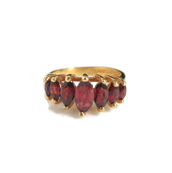 Garnet Ring, Vintage 14k HGE LIND Faux Garnet Ring, Multi-Stone Ring, Size 7, Gift for Her by LeesVintageJewels