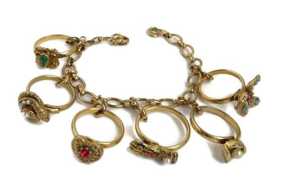 Vintage Charm Bracelet - Gold Tone Ring Charms Link Bracelet, Gift for Her by LeesVintageJewels