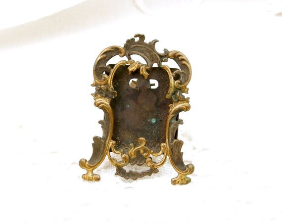 Very Small Antique Silver and Gold Plated Portrait Frame, Tiny French Victorian Metal Easel Standing Embossed Picture Frame by VintageDecorFrancais