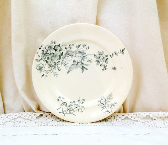 Antique French Ceramic Bird Pattern Plate, Dark Blue on White Blue Tits with Wild Rose Design, Victorian Decorative Dinnerware by VintageDecorFrancais