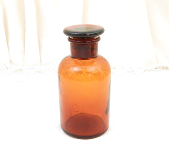 Large Vintage Brown Amber Glass Apothecary Chemist Bottle with Large Glass Stopper, 610 CL / 1.28 Pint by VintageDecorFrancais