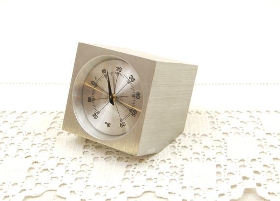 Vintage Mid Century Thermometer Mounted in a Machined Block of Solid Metal Used in a Laboratory Gradients Celsius, Retro Temperature by VintageDecorFrancais