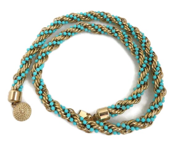 AVON Necklace - Vintage Turquoise & Gold Bead Rope Twist Necklace, Valentine's Day Gift, Gift Boxed by LeesVintageJewels