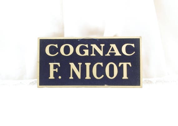 Vintage 1940s Blue and White Cognac Promotional Sign from France Cognac F Nicot, French Publicity Advertising Barmania by VintageDecorFrancais