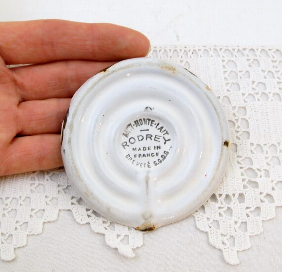 Antique French White Enameled Milk Saver, Rodery Enamelware Milk Watcher, Chippy Pot Watcher, Country Decor Milk Guard, Anti Monte Lait by VintageDecorFrancais