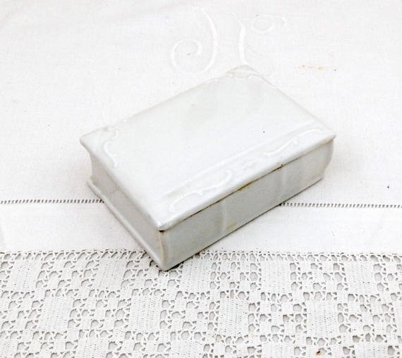 Antique White Porcelain Book Shaped Box, French Wedding Bone China Porcelaine de Paris Jewelry Container, Shabby Chateau Farmhouse Decor by VintageDecorFrancais